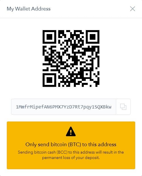 You will then be provided with your account’s wallet address. Use this address in the send field of a transaction to receive cryptocurrency.