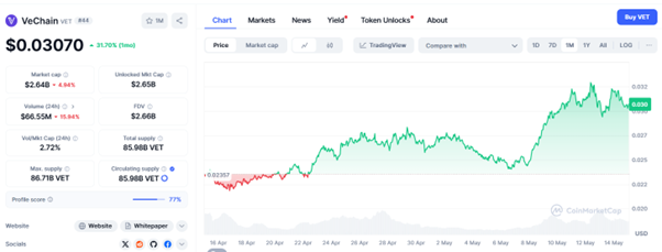 The crypto market has been buzzing in May, with virtually all cryptocurrencies entering the bullish zone. However, some coins offer more potential than others, making them highly sought after by investors. Looking at the market momentum this month, VeChain (VET), Cardano (ADA), and Dogecoin (DOGE) are among the tokens tipped to be the best cryptos on the market.
