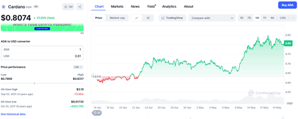 If ADA continues its bull run, investors may come back to over 10% gains by the end of May. However, a breakout above the $0.80 zone is required for ADA to rally to $1.