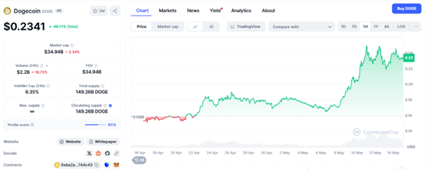 The DOGE ETF news also coincides with a nearly 50% increase in the DOGE price, which is now at around $0.23 and targeting $0.4 as its next stop.