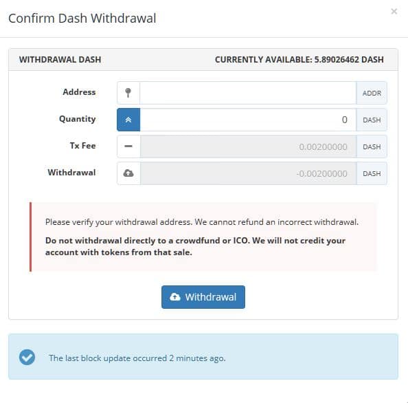 Enter the amount you want to withdraw and the address where you want your withdrawal sent.
