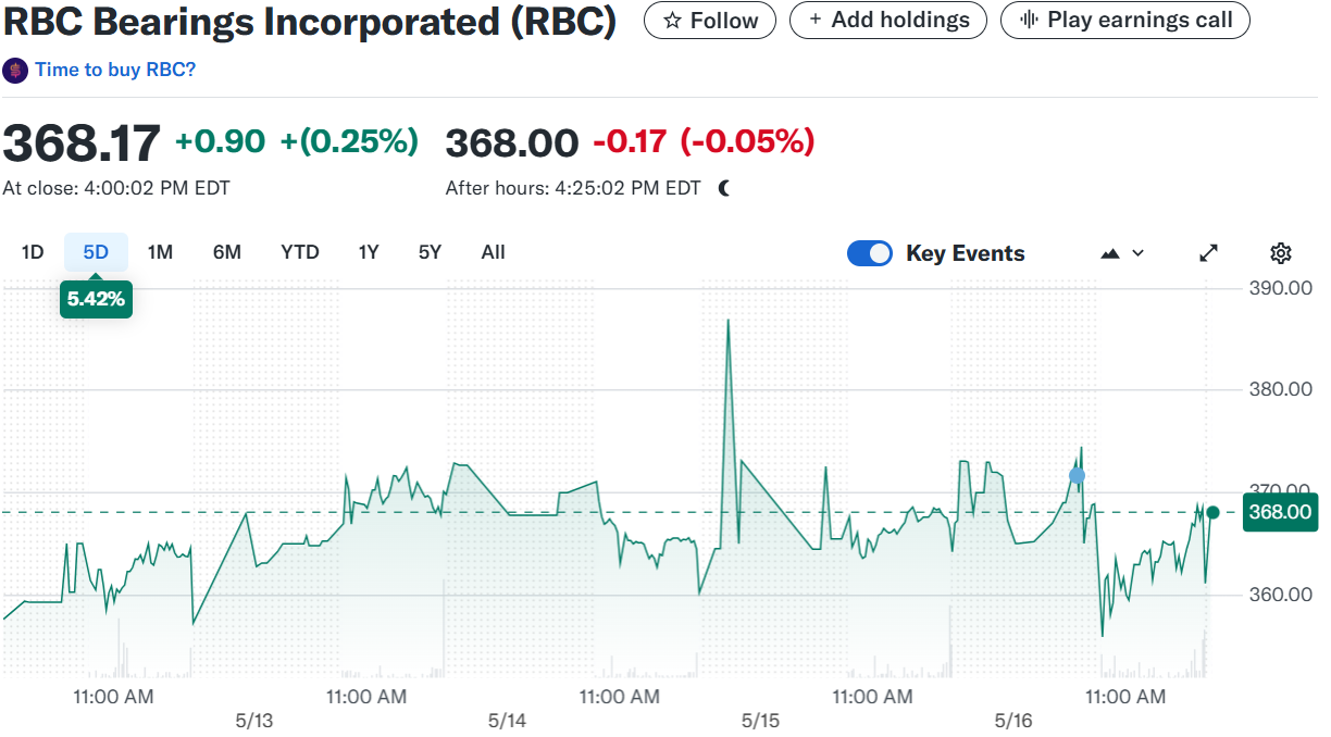 - RBC Bearings (RBC) closed at $368.19 on May 16, 2025.